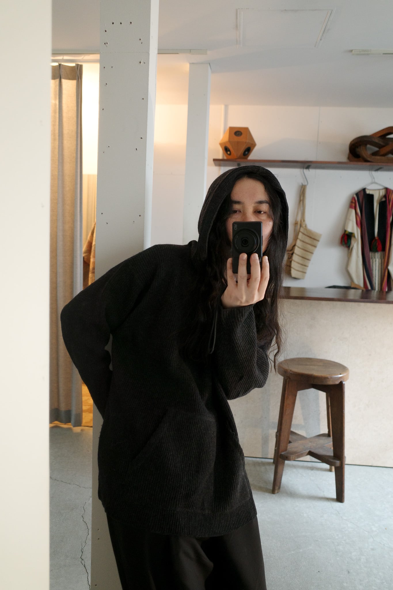 black knit hoodie